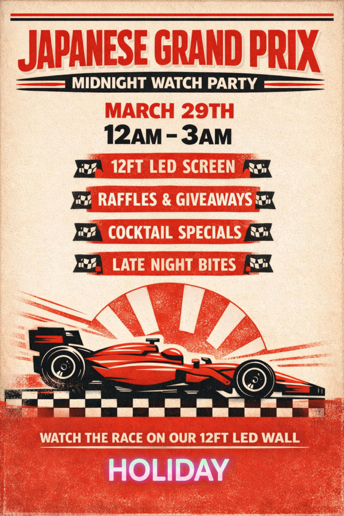 - Event Tags:ATL Drinks, Canadian Grand Prix, F1 Canada live, F1 fans, F1 viewing party, F1 Watch Party ATL, Formula 1, Formula 1 Canada, Formula 1 event, Grand Prix Live, Grand Prix LiveCanadian Grand Prix, Grand Prix party, Heineken specials, Holiday Bar ATL, live sports viewing, motorsport event, race watch party, racing event, Racing Fans ATL