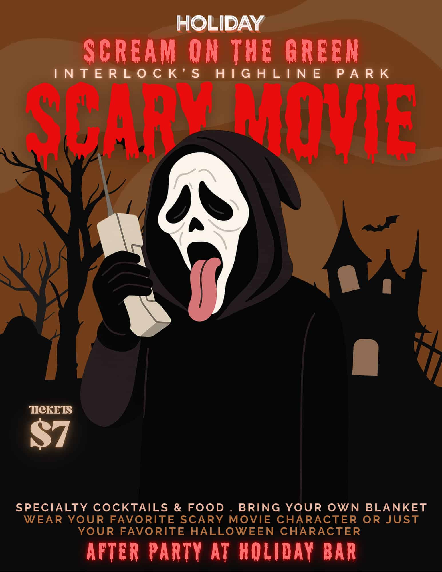 📅 Date: Thursday, October 30📍 Location: Interlock’s Highline Park🕗 Time: 8:00 PM – Until🎟️ Tickets: $7🍹 Perks: Specialty cocktails & food available | Bring your own blanket He’s behind you… or maybe he’s at the bar ordering another round. Join us for Scream on the Green: Scary Movie — a night of chills, cocktails, and cult-classic […]